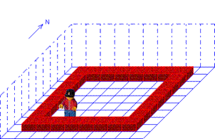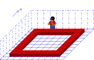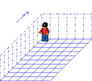 Karol soll eine Reihe Steine vor sich bis zur nächsten Wand hinlegen, unabhängig davon, wie groß die Welt ist.